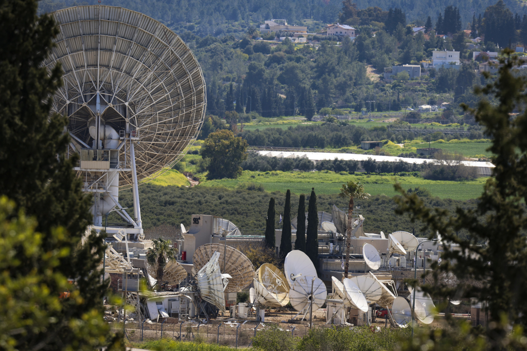10 Mart 2026 tarihinde, Hizbullah’ın Lübnan’dan ateşlediği bir füzenin Elah Vadisi’ndeki bir uydu istasyonuna verdiği hasarın görüntüsü. (Jonathan Shaul/Flash90)