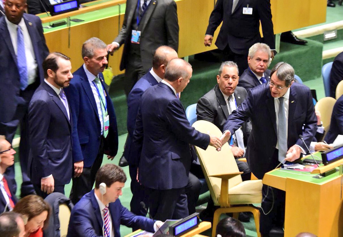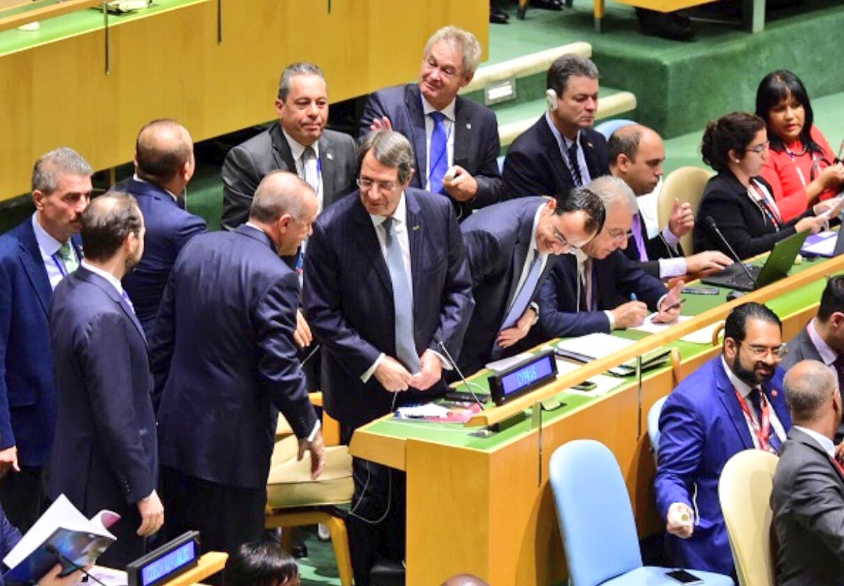 Öte yandan Türkiye Cumhurbaşkanı Recep Tayyip Erdoğan ile Kıbrıs Cumhuriyeti Cumhurbaşkanı Nikos Anastasiadis’in, dün sabah BM Genel Kurulunda, Erdoğan’ın salona gelmesi ve BM kürsüsünden konuşması öncesinde, Kıbrıs heyetinin yanından geçerken karşılaştıklarını ve “sıcak bir şekilde el sıkıştıklarını” yazan gazete, “elindeki bilgilere” göre, iki başkanın fazla konuşmadıklarını ve selamlaşmakla yetindiklerini belirtti.