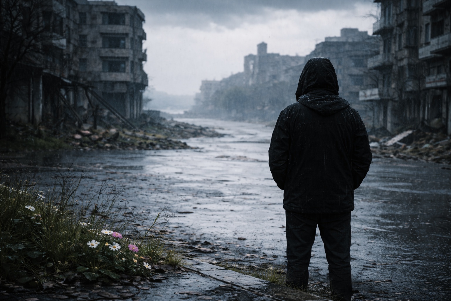 Arkamda koca bir şehir, yarım kalmış olsa da. Kocaman yarım kalmış çeyrek bir şehir. Yüzsüz, paramparça. Mağusam nazlı kızım elinde mendil ağlamakta…
